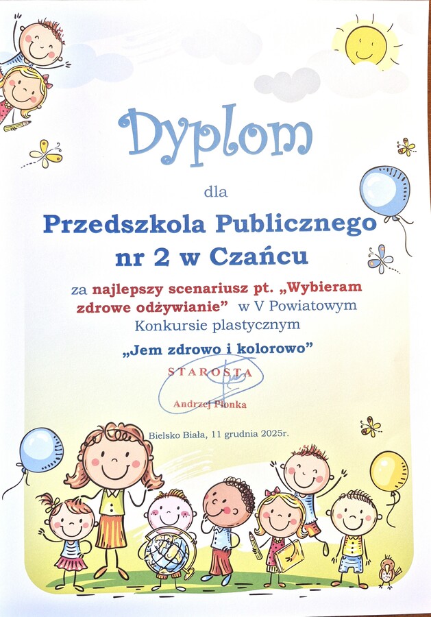 V Powiatowego Konkursu Plastycznego pt. „Jem zdrowo i kolorowo”.